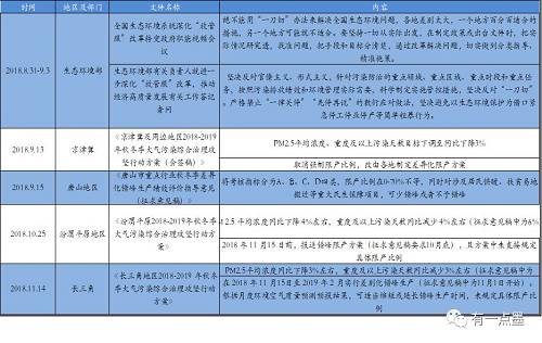 图表 9 2018年9月之后主要地区环保限产政策