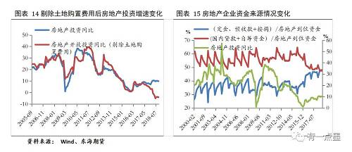 2018年房地产行业整体表现超出市场预期,前10个月,房地产投资同比增长9.7%,较2017年底回升2.7个百分点;新开工面积增速更是连续6个月位于10%以上,同时,房地产中传统的从销售到新开工的传导周期有所拉长。这主要是由以下两方面原因所造成,一方面是由于前期土地购置费用的高速增长所致,1-10月份土地购置费用同比增长63.4%,而剔除土地购置费用后的房地产投资增速为-4.1%。另一方面,今年以来持续的房地产调控政策使得开发商融资压力增加,为了缩短资金回笼周期,房地产企业有加快赶工的需求。从房地产企业资金来源情况中可以看出,定金及预收款和按揭贷款的占比由年初的42%增加到47%,而国内贷款和自筹资金占比则由年初的51%降至48%。