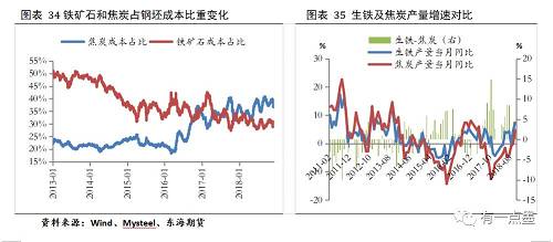2017年以来,焦炭受益于供给侧改革以及环保限产因素影响,价格持续走高,对于钢材成本的影响也日益增加,根据我们的计算,焦炭成本在整个钢坯成本中的比重由2014年初的20%最高上升至40%,目前约在35%附近,仍高于铁矿成本。另外,我们看到自2017年5月以来,生铁产量的增速持续高于焦炭产量增速,表明其供需缺口一直存在。我们认为,2019年将是焦化行业的“去产能”元年,环保限产等政策的力度可能也会维持。按照《焦化行业“十三五”发展规划纲要》和近几年去产能进度推算,2019年-2020年仍有1700万吨产能需要退出,年均850万吨。